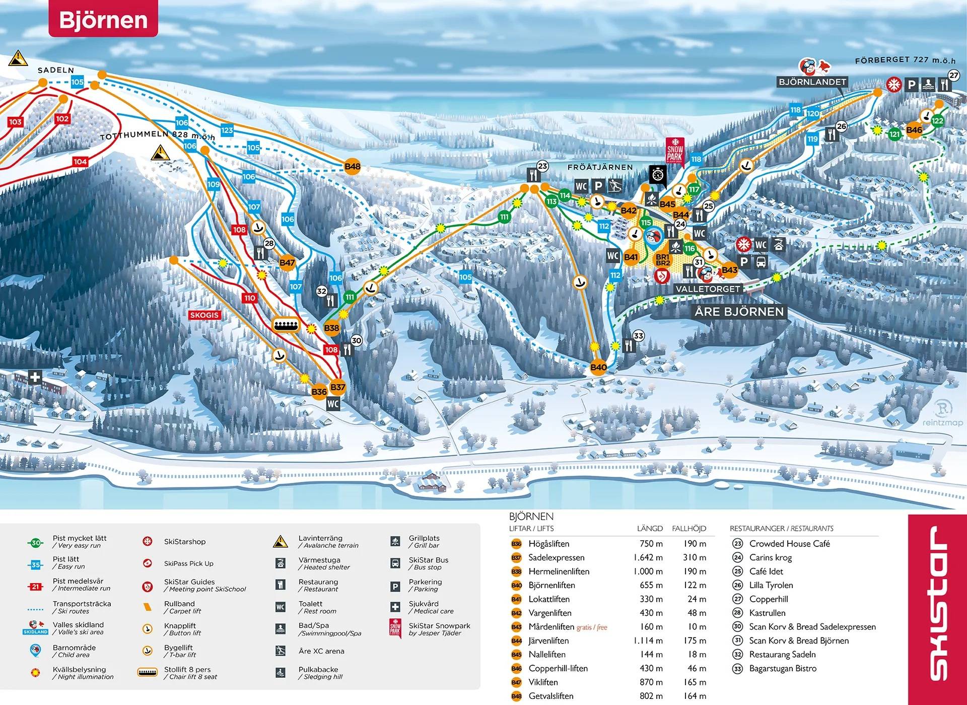 Åre (0,2 km), Björnen (0,2 km), Björnänge (4 km), Duved (8 km) Plaatsen bij het skigebied