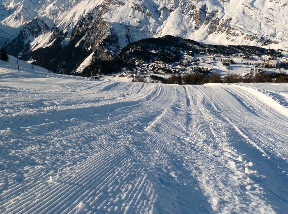 Algemene opmerking: Bij verse sneeuw is het, onafhankelijk van de inzet van maximale mankracht, niet altijd mogelijk om de pistes optimaal te prepareren. Bovendien kan de verse sneeuw niet aan de daaronder liggende sneeuwlaag hechten waardoor er snel buckels ontstaan. Uit veiligheidsoverwegingen is het meestal niet mogelijk om de pistes overdag te prepareren.