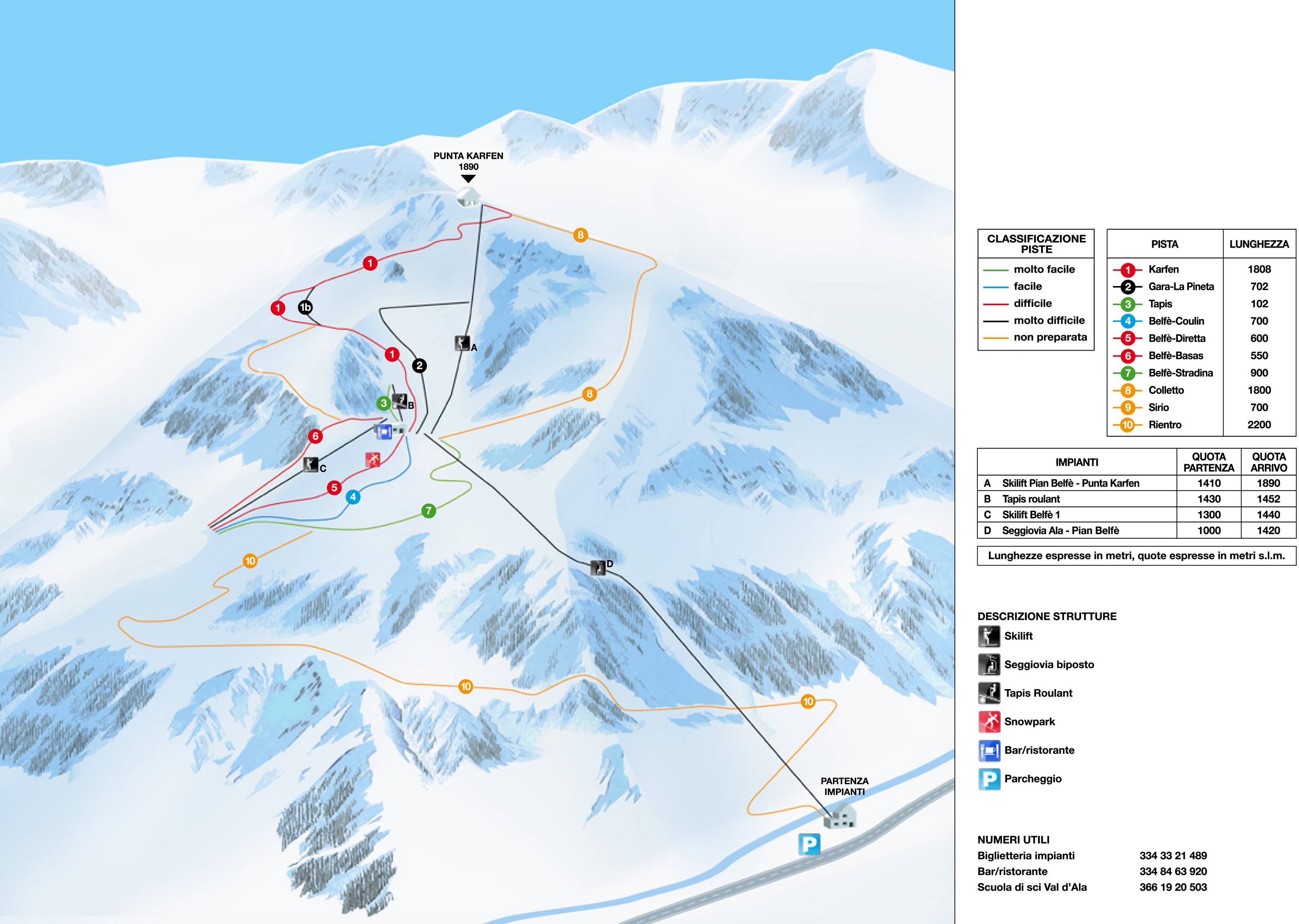 Pistekaart Ala di Stura seizoen ---- !!! closed temporarily/vorübergehend außer Betrieb