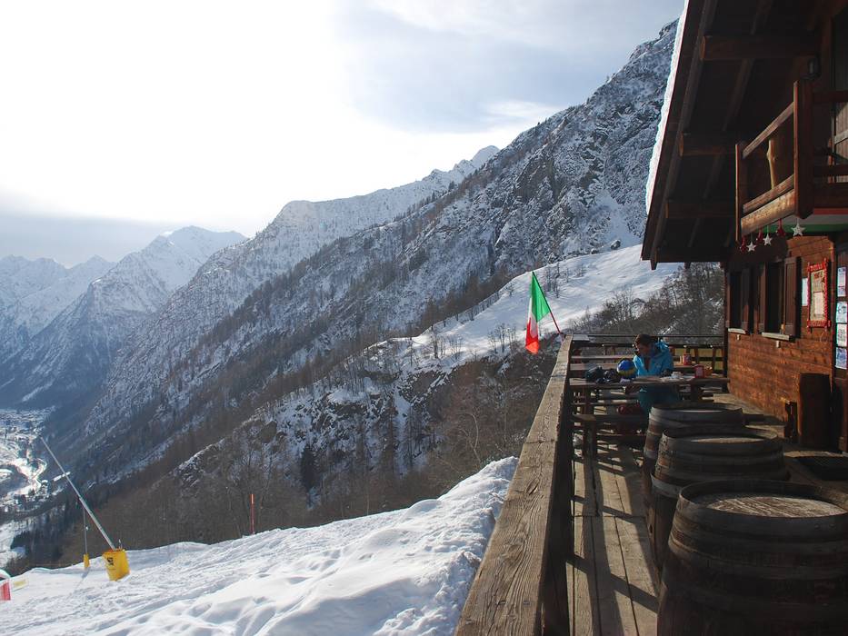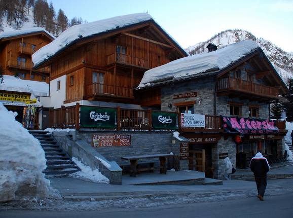 De enige après-bar met livemuziek ligt iets boven het dorp Champoluc. Omdat de piste vanaf 17 uur niet meer gebruikt mag worden, heeft de uitbater een klein pad door het bos naar de parkeerplaats aangelegd.