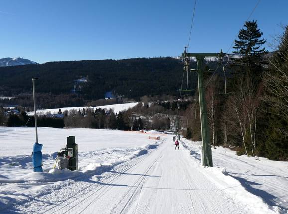 Het skigebied Alpalouka is overzichtelijk met een sleeplift en een tellift. De lichte piste is zeer breed.