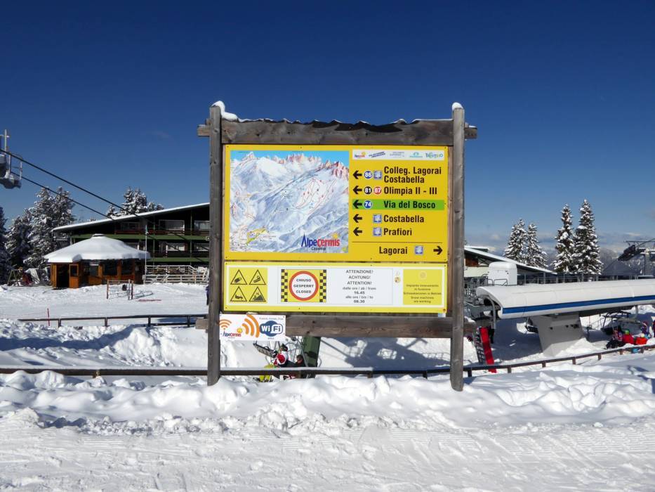 | Opmerking: De openingstijden zijn algemene informatie van het skigebied Alpe Cermis – Cavalese en kunnen afhankelijk van de sneeuwcondities, werkdagen, vakanties en feestdagen variëren. | |