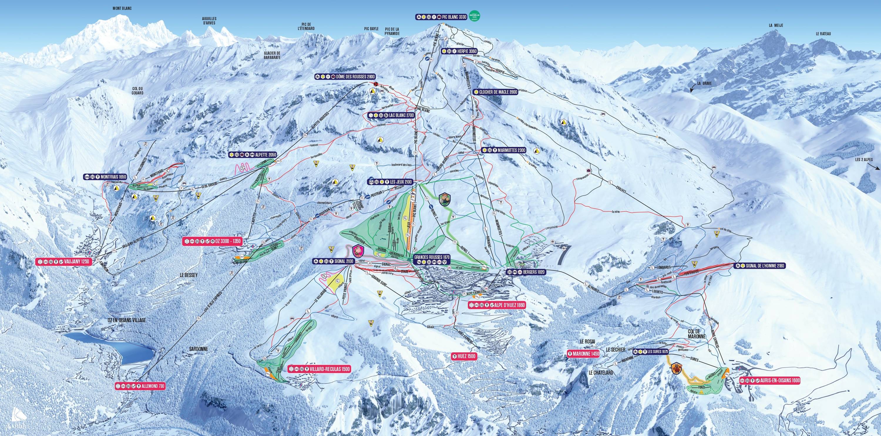 Oriëntatie (pistekaart, informatieborden, bewegwijzering piste) en veiligheid in het skigebied Alpe d'Huez
