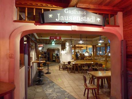 Eten onder originele 300 jaar oude houten shingles met uitzicht op de piste. De verfijnde en hoogwaardige Alpengastronomie biedt een grote keuze aan steakvariaties en schnitzels, evenals typische desserts zoals Kaiserschmarrn. Daarnaast is er een goede selectie wijnen en sterke dranken.
