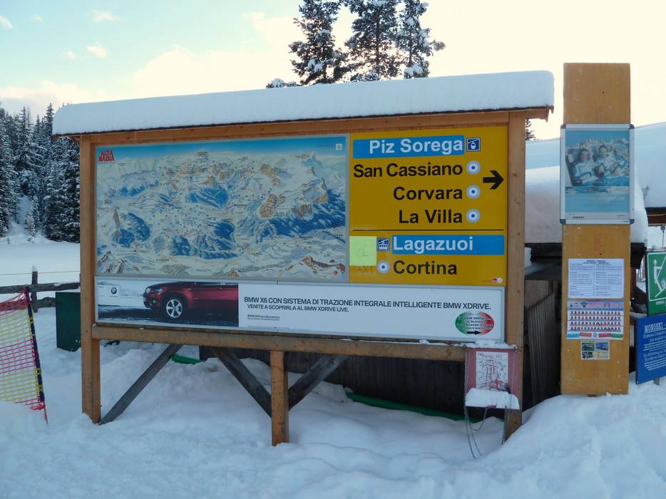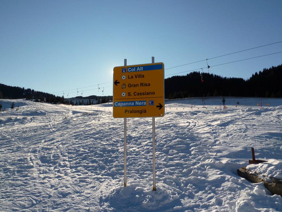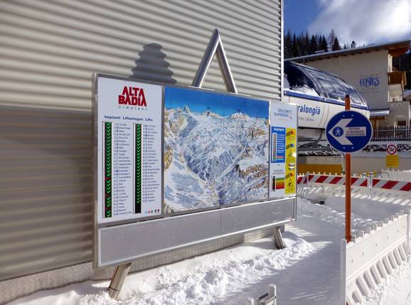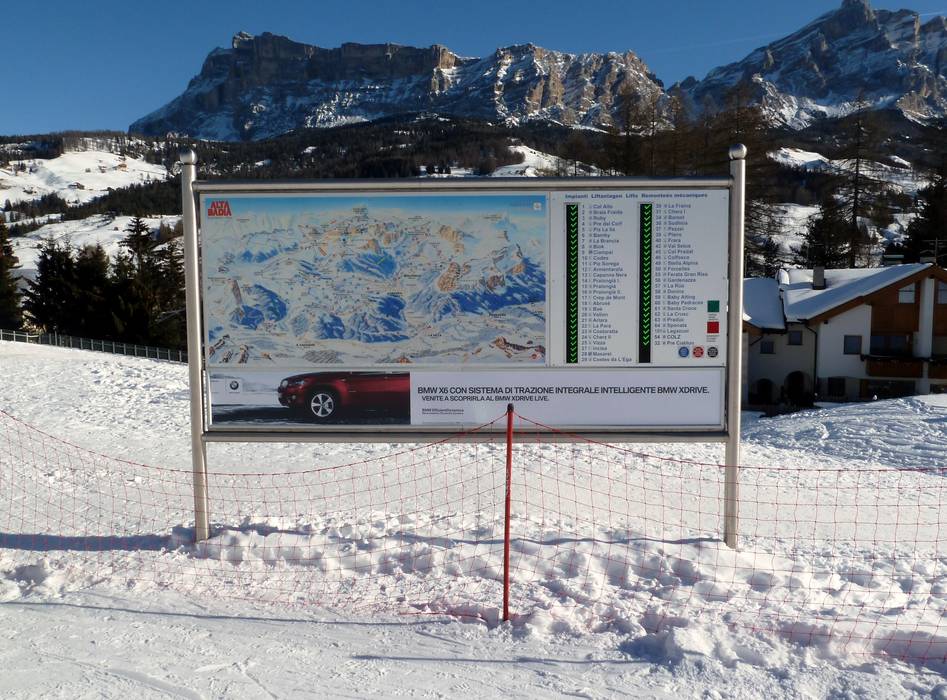 Je vindt gemakkelijk je weg in het skigebied. De twee kleuren groen en oranje geven heel duidelijk de verschillende richtingen rond de Sellastock aan. Wegwijzers leiden naar alle plaatsen van Alta Badia. Op sommige plekken zouden echter uitgebreide informatieborden kunnen worden toegevoegd.