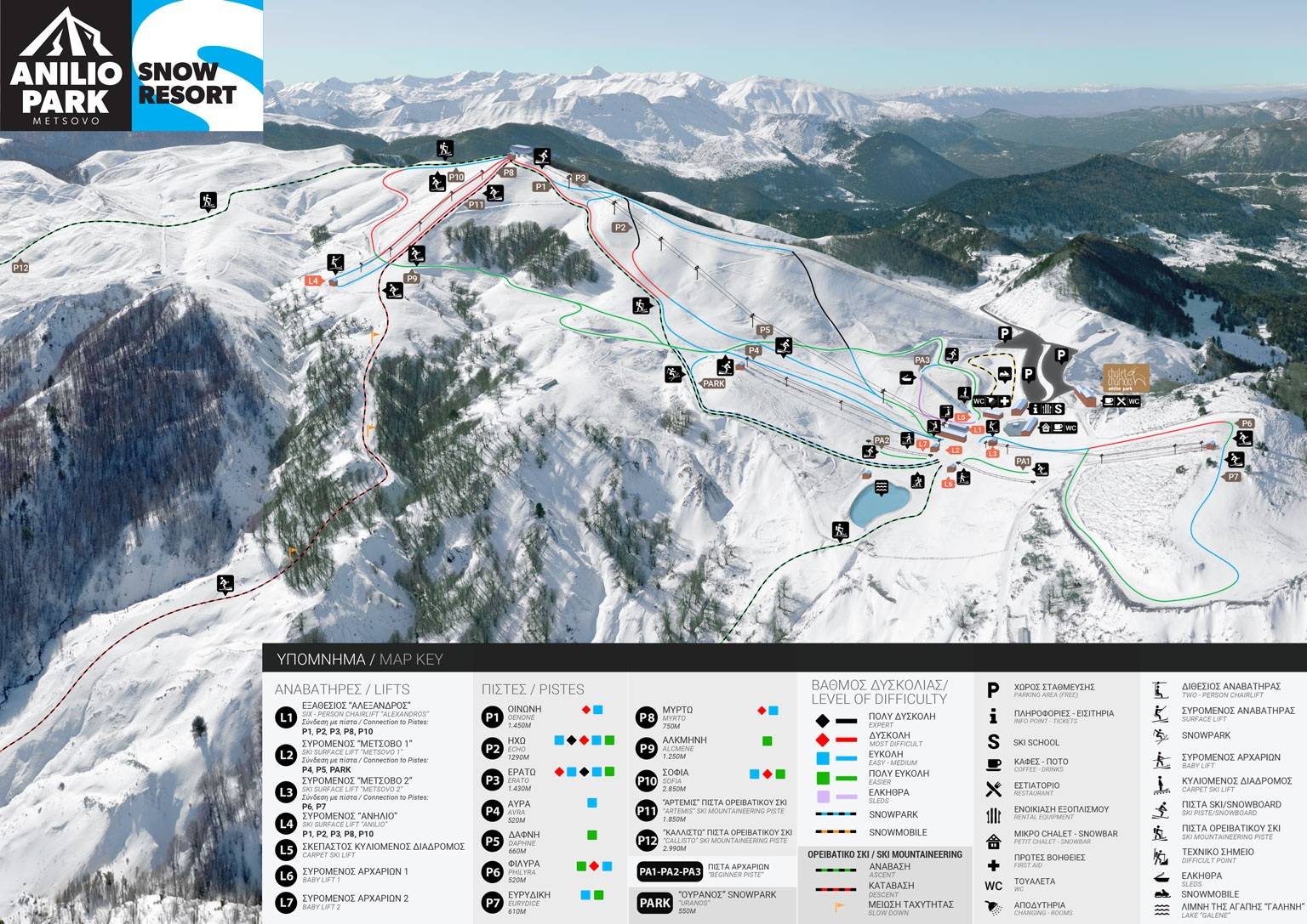 Anilio, Metsovo (Μέτσοβο) Plaatsen bij het skigebied: