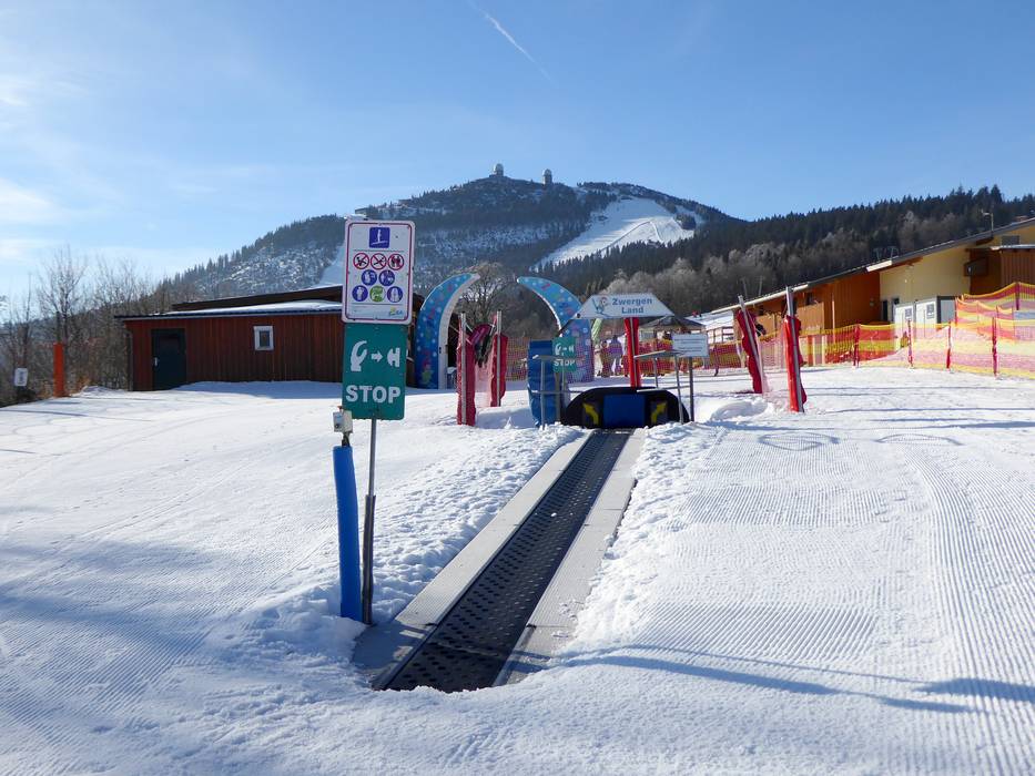 Het Dwergenland bevindt zich bij het Arbär-Kinderland en is alleen te gebruiken met een boeking bij een van de skischolen. Hier kun je in alle rust samen met een skileraar de eerste bochten in de sneeuw oefenen. Er is ook een kort transportband beschikbaar.