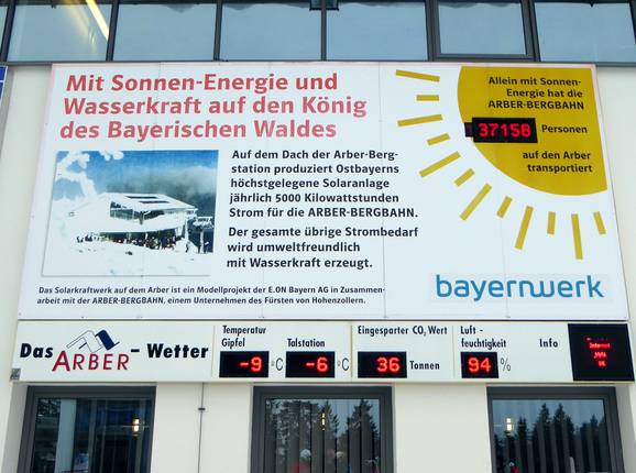 Op het dak van het Arber-bergstation produceert de hoogstgelegen zonne-installatie van Oost-Beieren jaarlijks 5000 kilowattuur stroom voor de Arber-Bergbahn. De volledige overige stroombehoefte wordt milieuvriendelijk opgewekt met waterkracht. Daarnaast zijn er laadpunten voor elektrische auto's op de parkeerplaats.