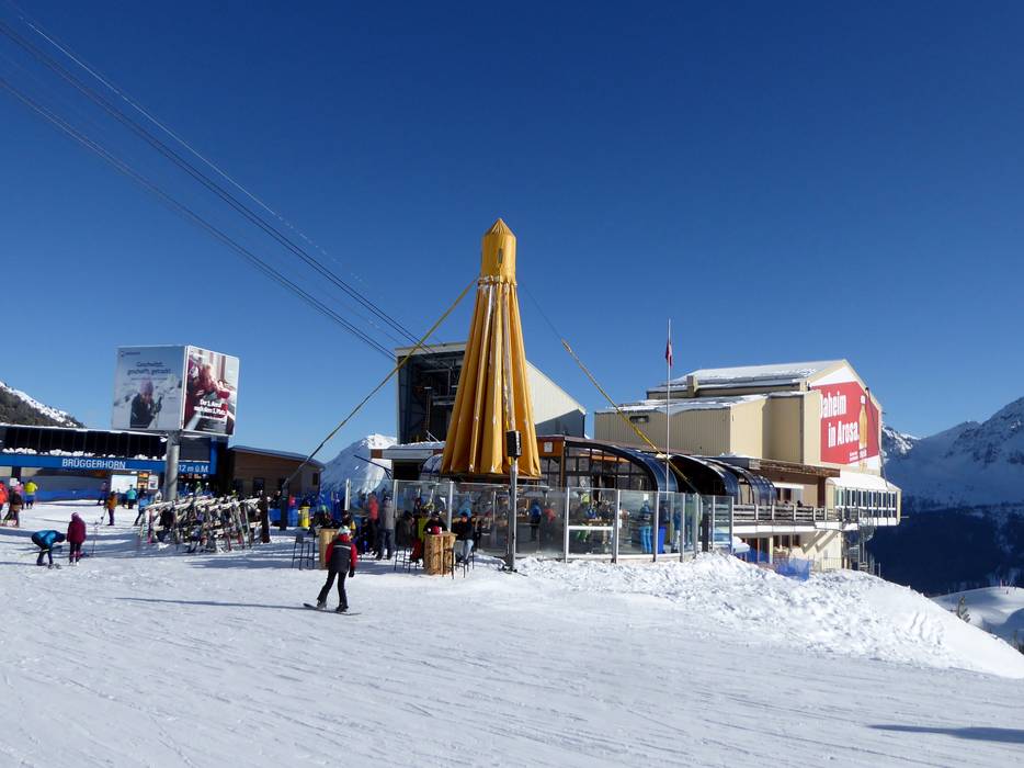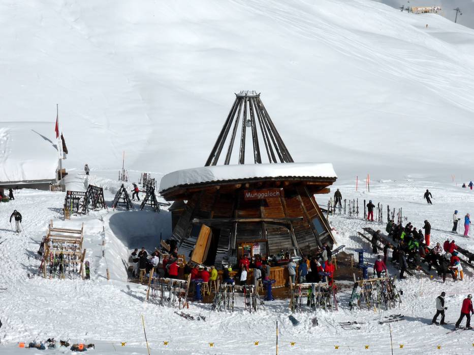 In de KuhBar, direct naast de Tschuggenhütte, kun je genieten van après-ski plezier op het grote, zonnige terras of in het traditionele houten chalet. Maar let op: je moet nog steeds naar het dal afdalen!