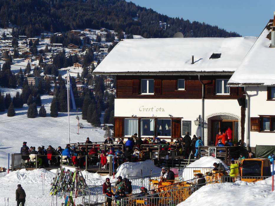 In Crest'ota kun je de skidag heerlijk afsluiten. Tijdens de laatste afdaling naar Lenzerheide geniet je hier van de laatste zonnestralen en proost je met culinaire lekkernijen en goede drankjes op een dag vol belevenissen.