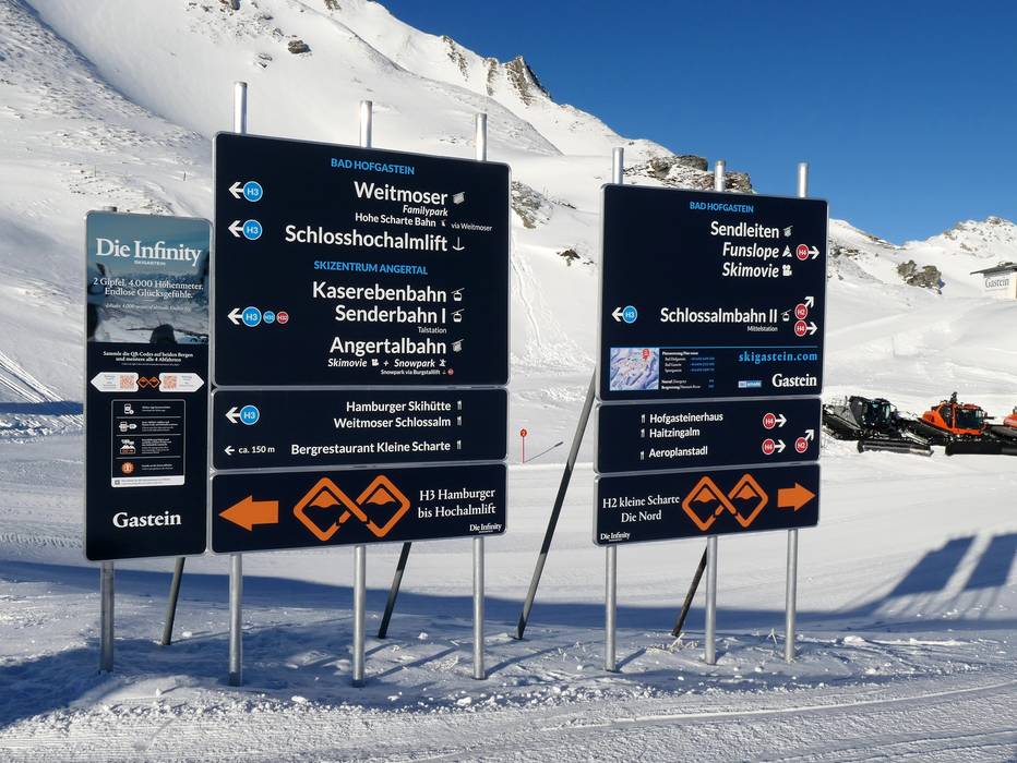 Panoramische informatietafels met actuele informatie zijn te vinden bij alle berg- en dalstations en op relevante plekken in het skigebied. De multimedia-panorama-informatieborden en monitoren zijn zeer modern. De bewegwijzering is over het algemeen zeer goed. De belangrijke bestemmingen Bad Gastein, Bad Hofgastein en het Skizentrum Angertal staan zeer duidelijk aangegeven.