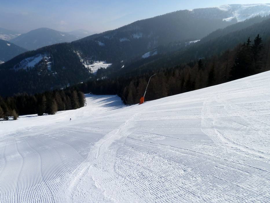 De brede afdalingen worden zeer goed geprepareerd, alleen bij kruisingen en overgangen van de pistes kan het wat hobbelig worden.