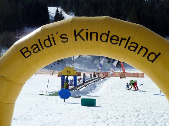 Direct aan het dalstation van de Schelpenbahn bevindt zich Baldi' Kinderland van de Schneesportschule Balderschwang Hochallgäu. Hier wachten een transportband en grappige figuren op de kleintjes.