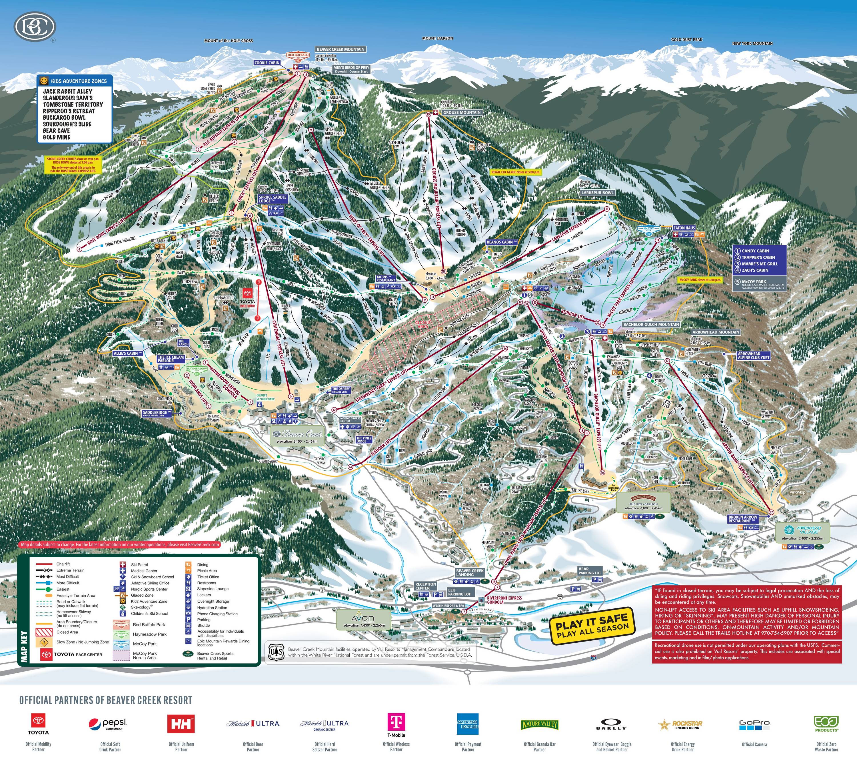 Oriëntatie (pistekaart, informatieborden, bewegwijzering piste) en veiligheid in het skigebied Beaver Creek