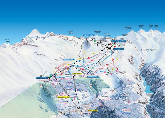 Belalp (0 km), Blatten bei Naters (0,2 km), Tschuggen (0,2 km), Brig (9 km) Plaatsen bij het skigebied