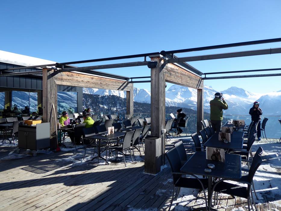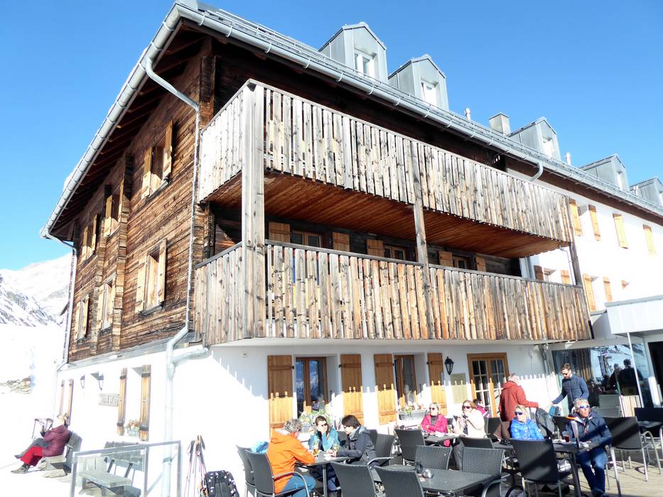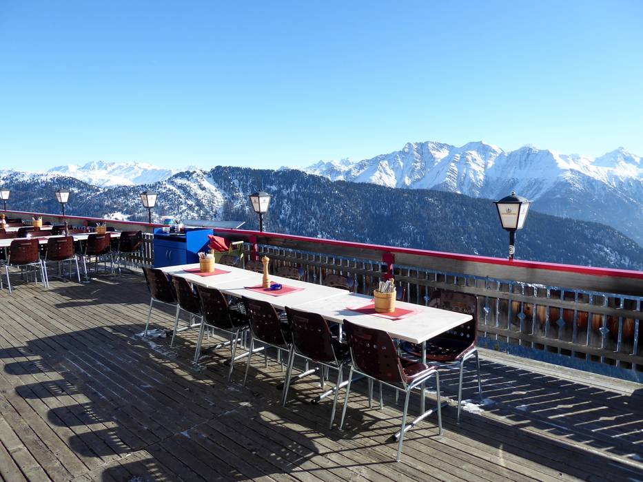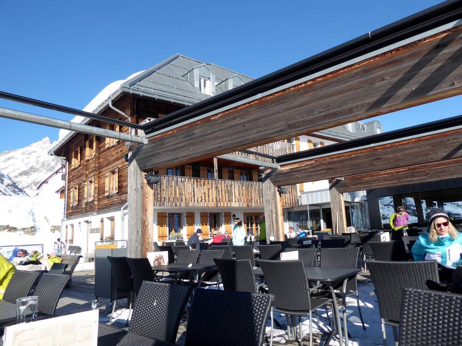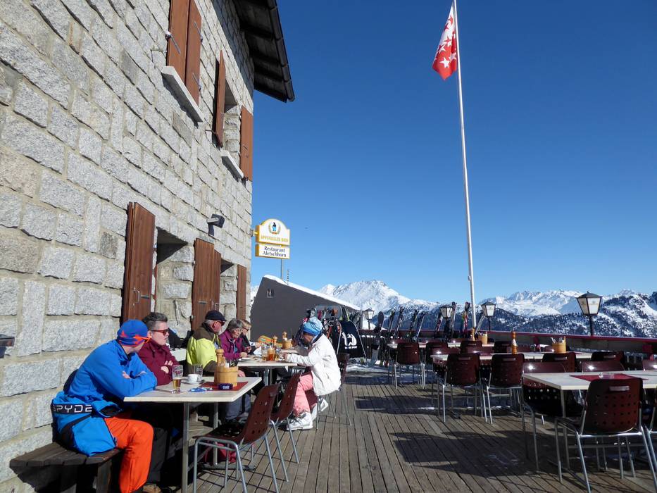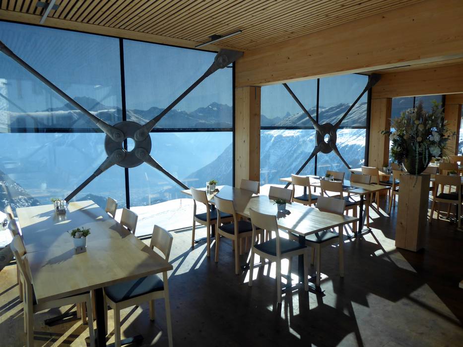 De Aletschhorn serveert verse pizza uit de houtoven. Ook de verschillende rösti zijn erg populair. Het zonneterras biedt een grandioos uitzicht over de Walliser bergen tot in het dal.