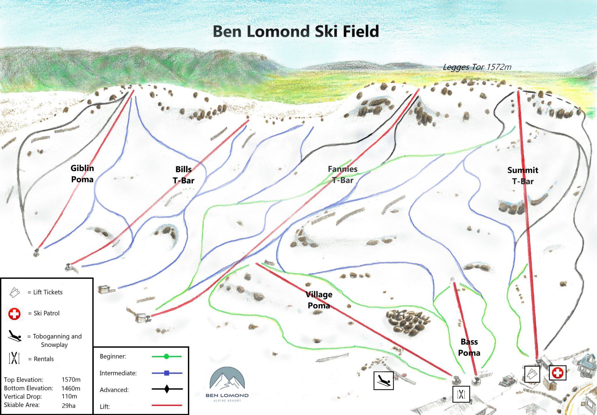 Pistekaart Ben Lomond seizoen 2025