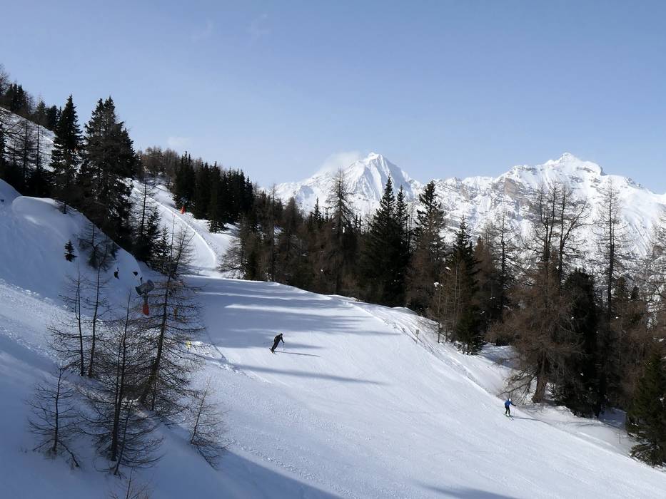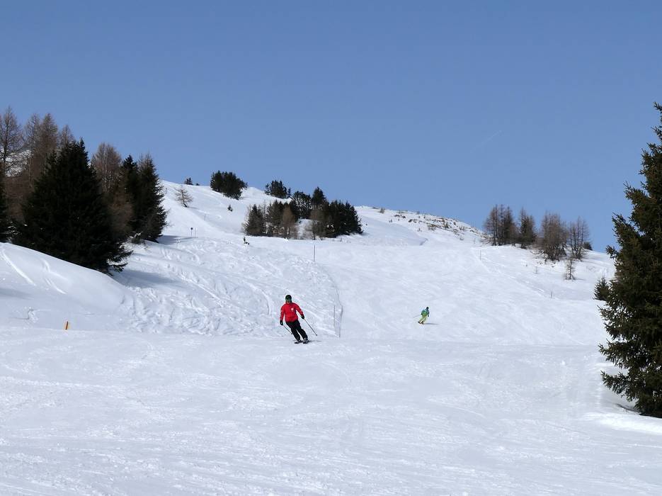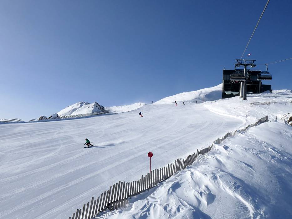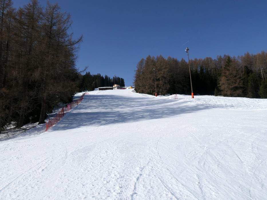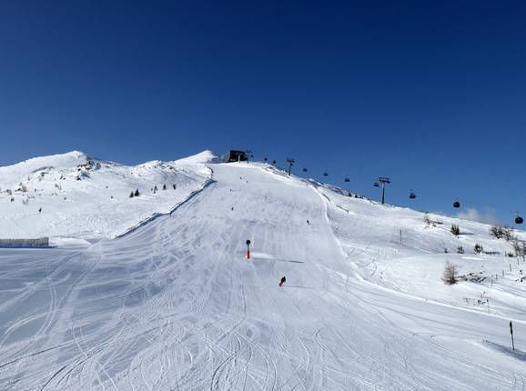 Naar het dalstation van de gondelbaan leiden middelzware pistes en een steile skiroute.