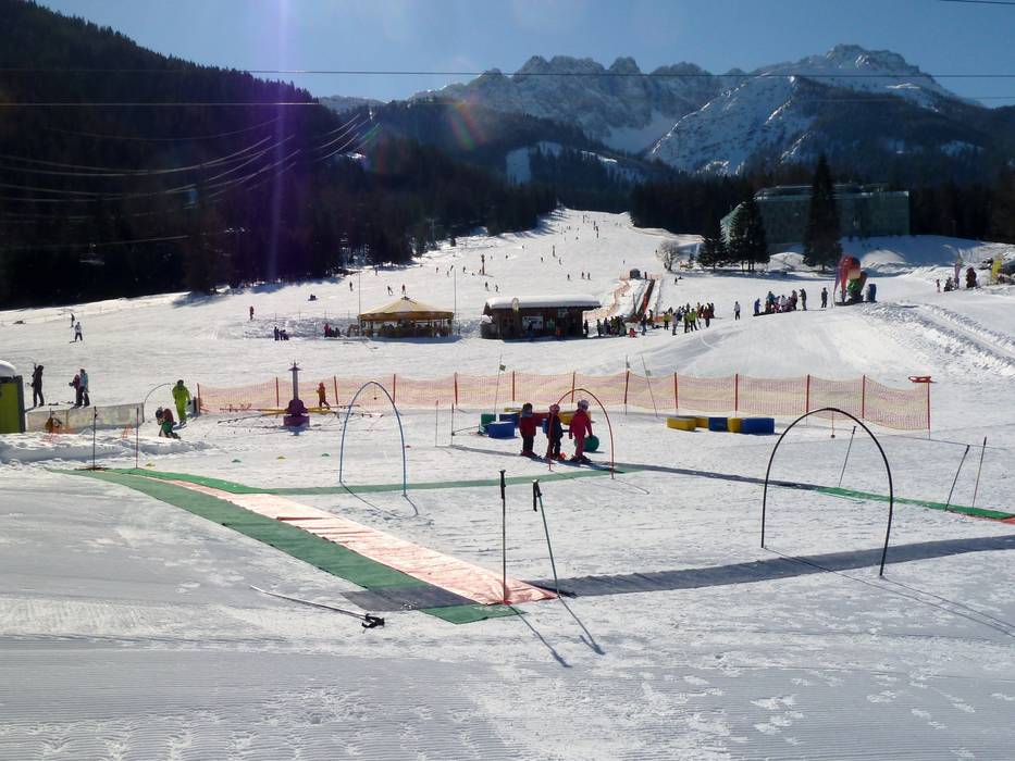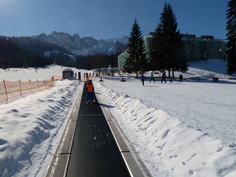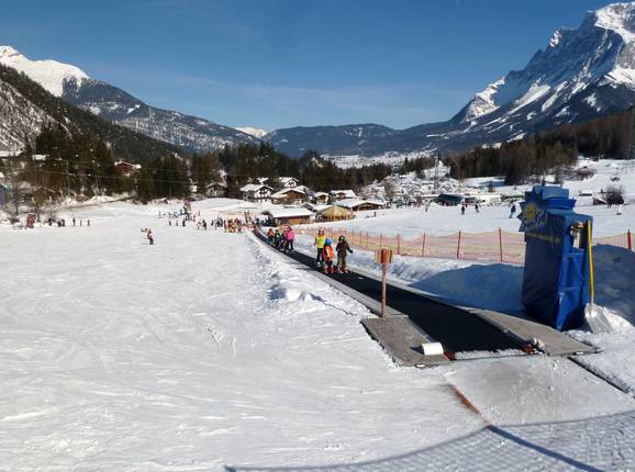 Direct bij het dalstation kunnen de kinderen zich uitleven in het Kinderland en leren skiën. Een extra brede tovertapijt maakt de kinderen blij.