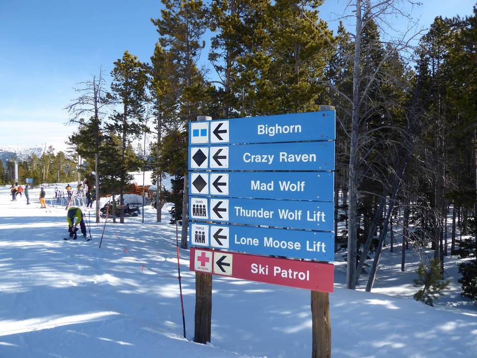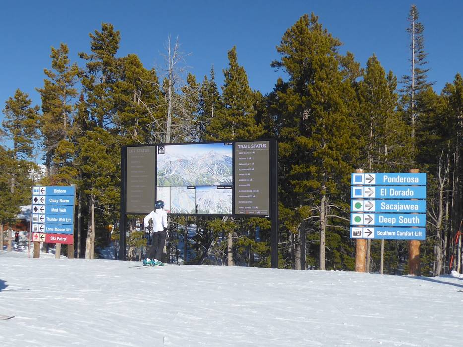 Oriëntatie (pistekaart, informatieborden, bewegwijzering piste) en veiligheid in het skigebied Big Sky Resort