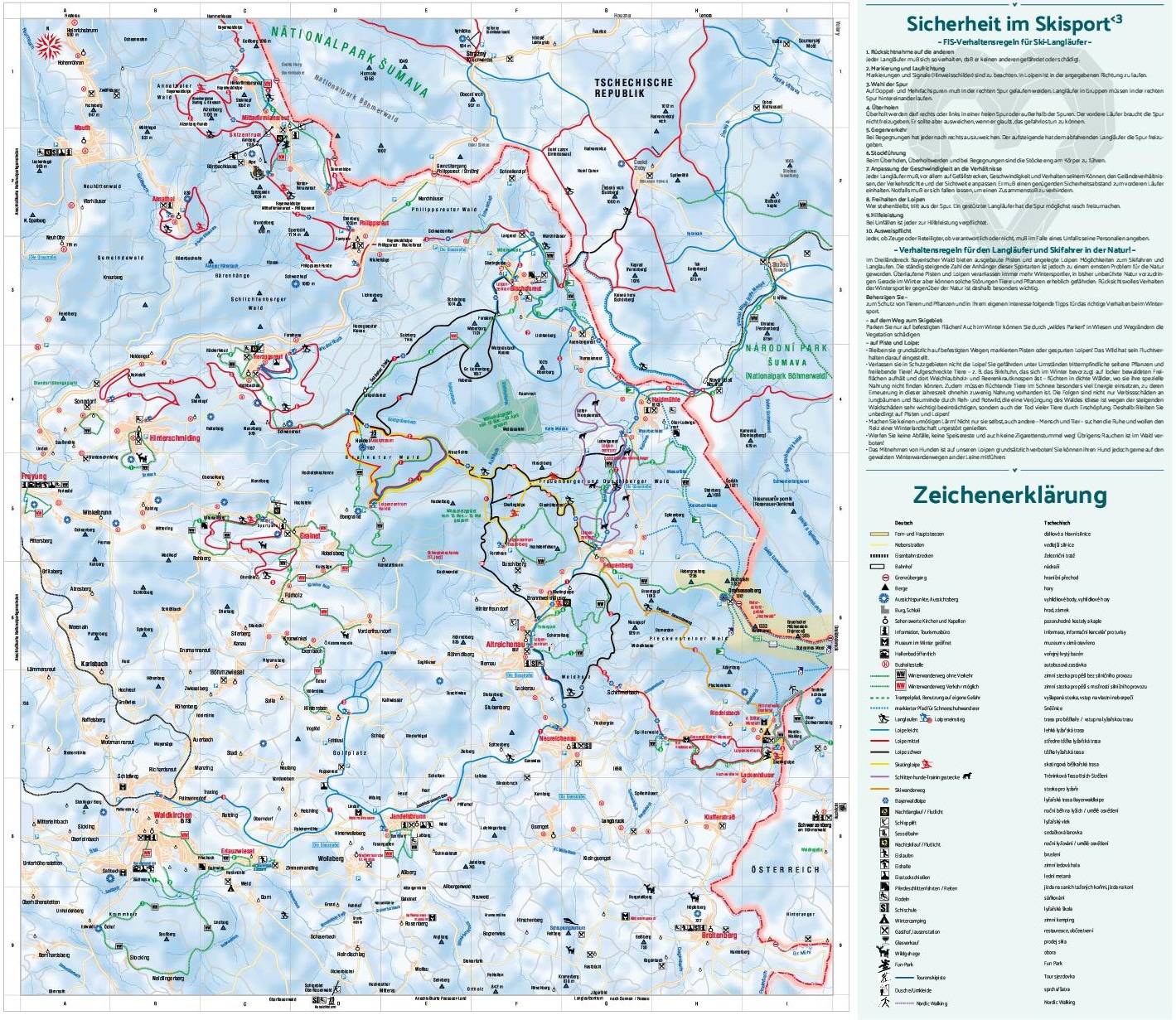 Oriëntatie (pistekaart, informatieborden, bewegwijzering piste) en veiligheid in het skigebied Bischofsreut