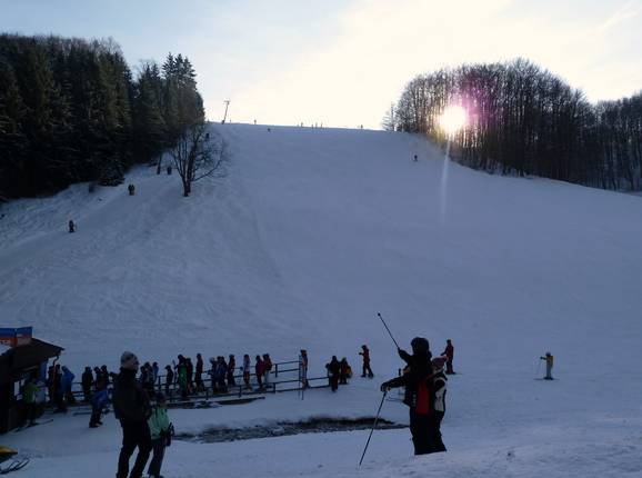 Wegwijzers naar de skilift in Wiesensteig Uitzicht vanaf het bergstation op de…