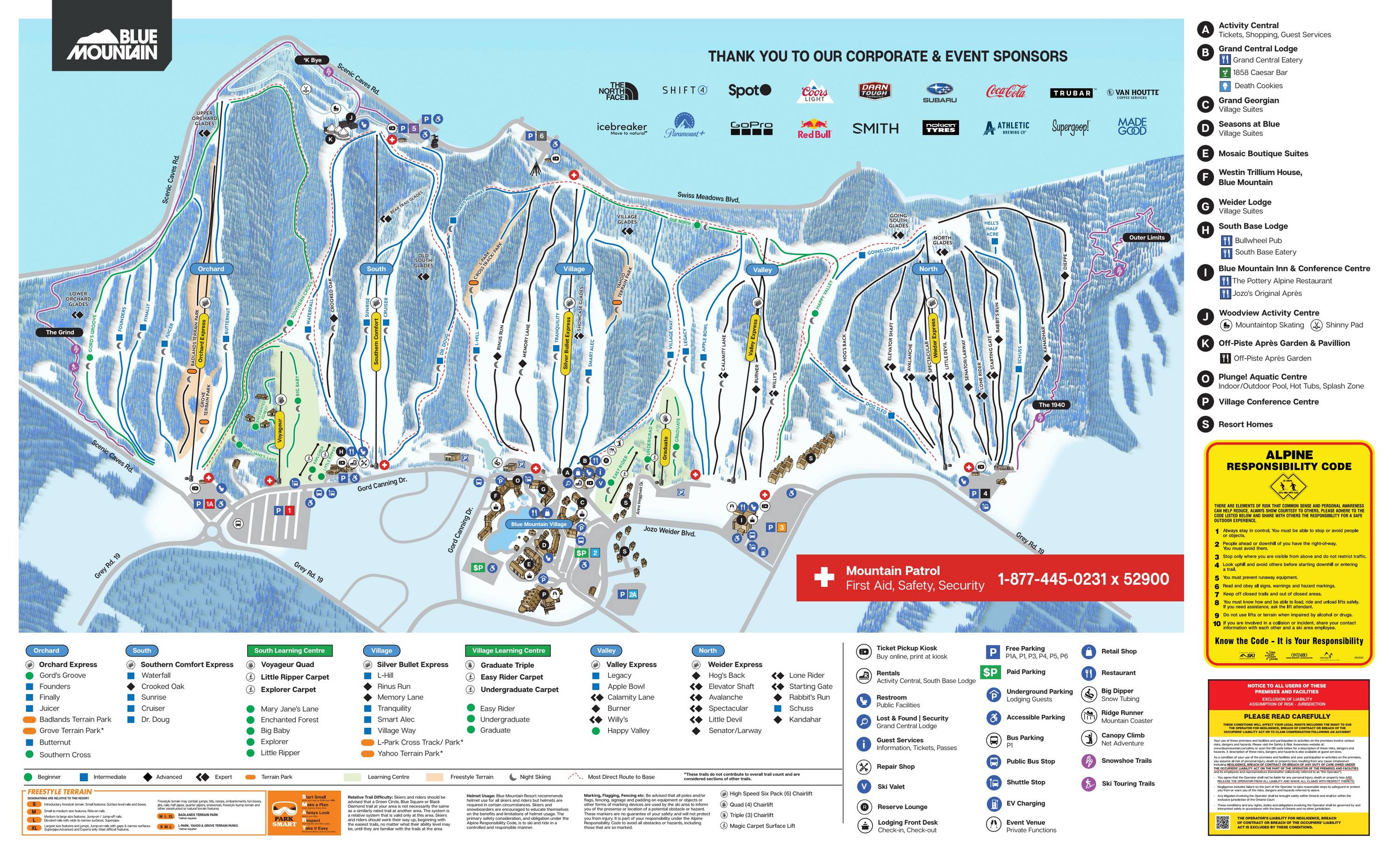 Pistekaart Blue Mountain Resort seizoen 2025/2026