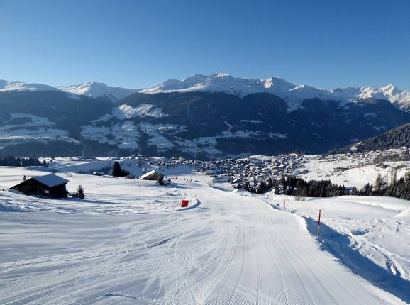 Brede pistes in het skigebied… Adembenemend panorama op het hoogste punt Start van de pistes op het hoogste punt