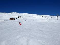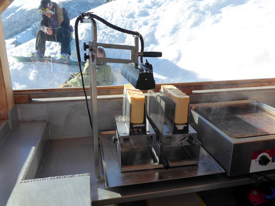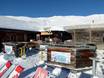 De sneeuwbar Miret biedt een gezellige berghut-sfeer, warme drankjes en hoogwaardige gerechten. Het uitzicht vanaf de hut over de bergen is adembenemend.