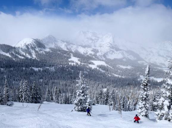 Vanaf de grote parkeerplaats bovenaan in de Big Cottonwood Canyon vertrekken stoeltjesliften in verschillende richtingen het skigebied in. De vier gebieden Great Western, Snake Creek, Crest en Milly bieden toegang tot meer dan 60 verschillende afdalingen. Je kunt het aanbod aan pistes uitbreiden door over te stappen naar het aangrenzende skigebied Solitude. Hiervoor is een skipas voor beide skigebieden nodig.