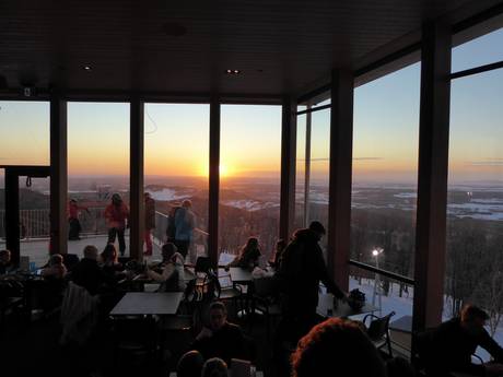 Na een enerverende dag op de pistes in Bromont kun je ontspannen tijdens een gezellige après-ski. De zonsondergangen in het Chalet du Sommet zijn absoluut een aanrader, of geniet van een drankje bij het open haardvuur. In de bistro-bar La Débarque bij het dalstation kun je de skidag ook op een heerlijke manier afsluiten.