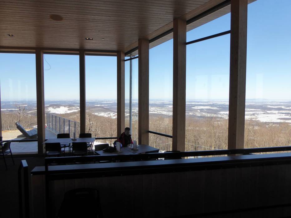 Direct aan de top bevindt zich het in december 2019 volledig nieuw geopende Chalet du Sommet. Hier zijn meerdere culinaire gelegenheden, zoals Le Daffy, Bistro L'Escale en Le Comptoir. Je kunt kiezen uit verse bakwaren, sandwiches, flammkuchen, quiches en pasta. Het hoogtepunt is natuurlijk het uitzicht op de Monteregians en de Appalachen. De zonsondergang mag je hier boven zeker niet missen.