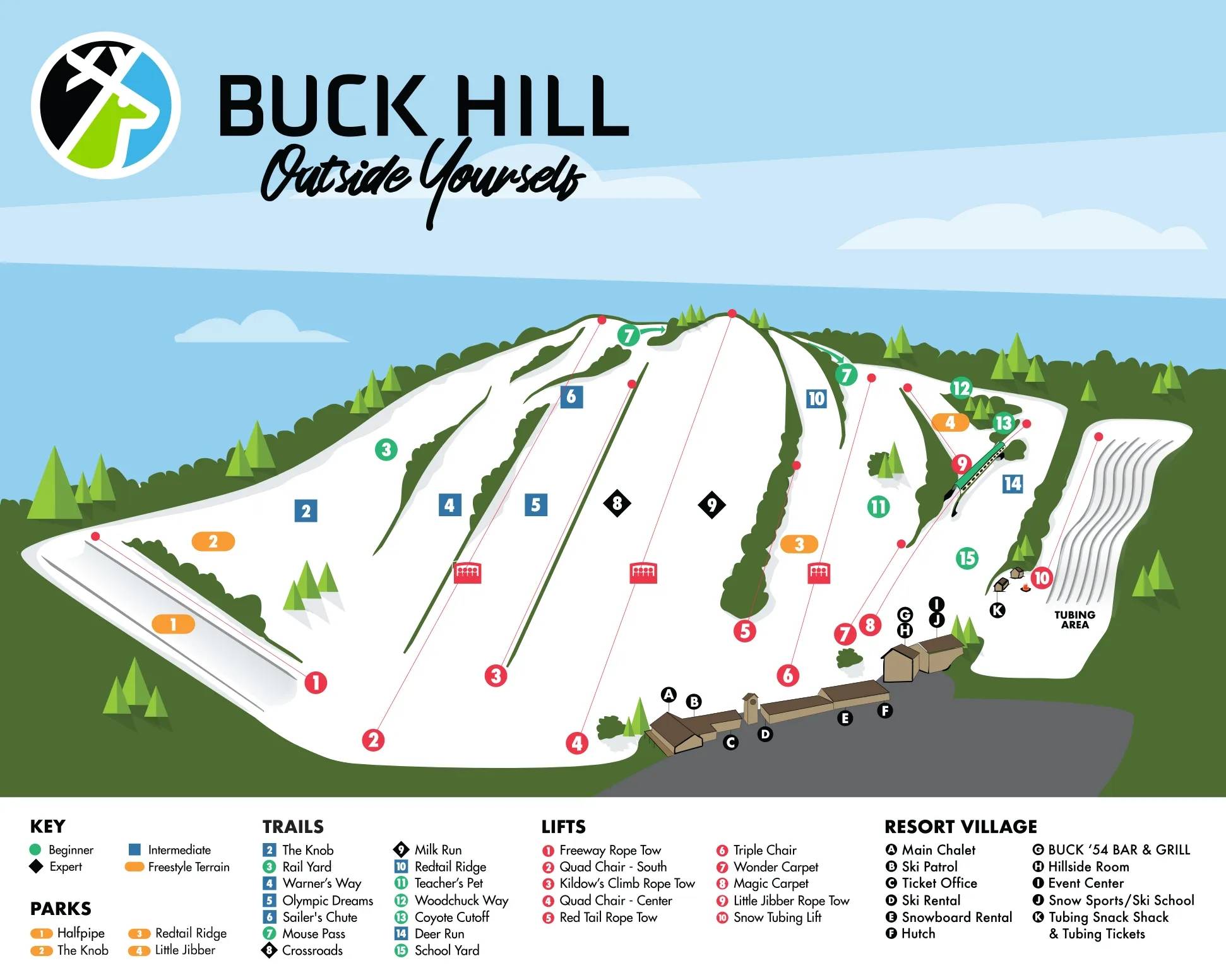 Pistekaart Buck Hill seizoen 2025/2026