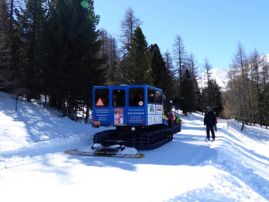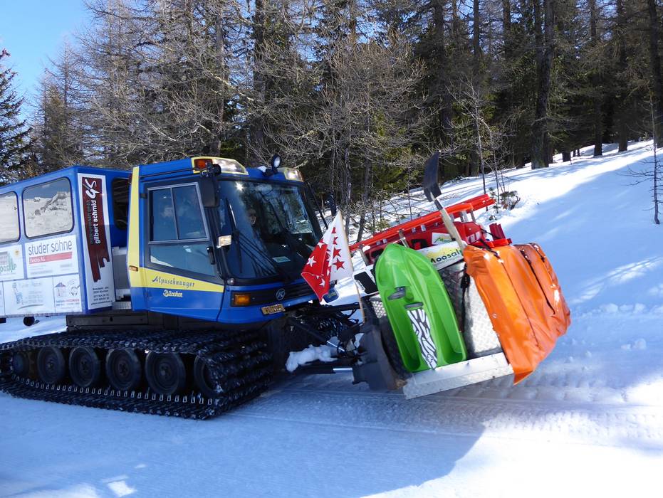 De Alpuschnaager is een pistevoertuig met een passagierscabine voor maximaal 20 personen. Hiermee kan het hele gezin zich van Bürchen naar de Bürchner- of Moosalp laten brengen. Hier wachten maar liefst drie geweldige bergrestaurants. En het beste: de chauffeur heeft ook sleeën bij zich voor de meer dan vijf kilometer lange afdaling terug.