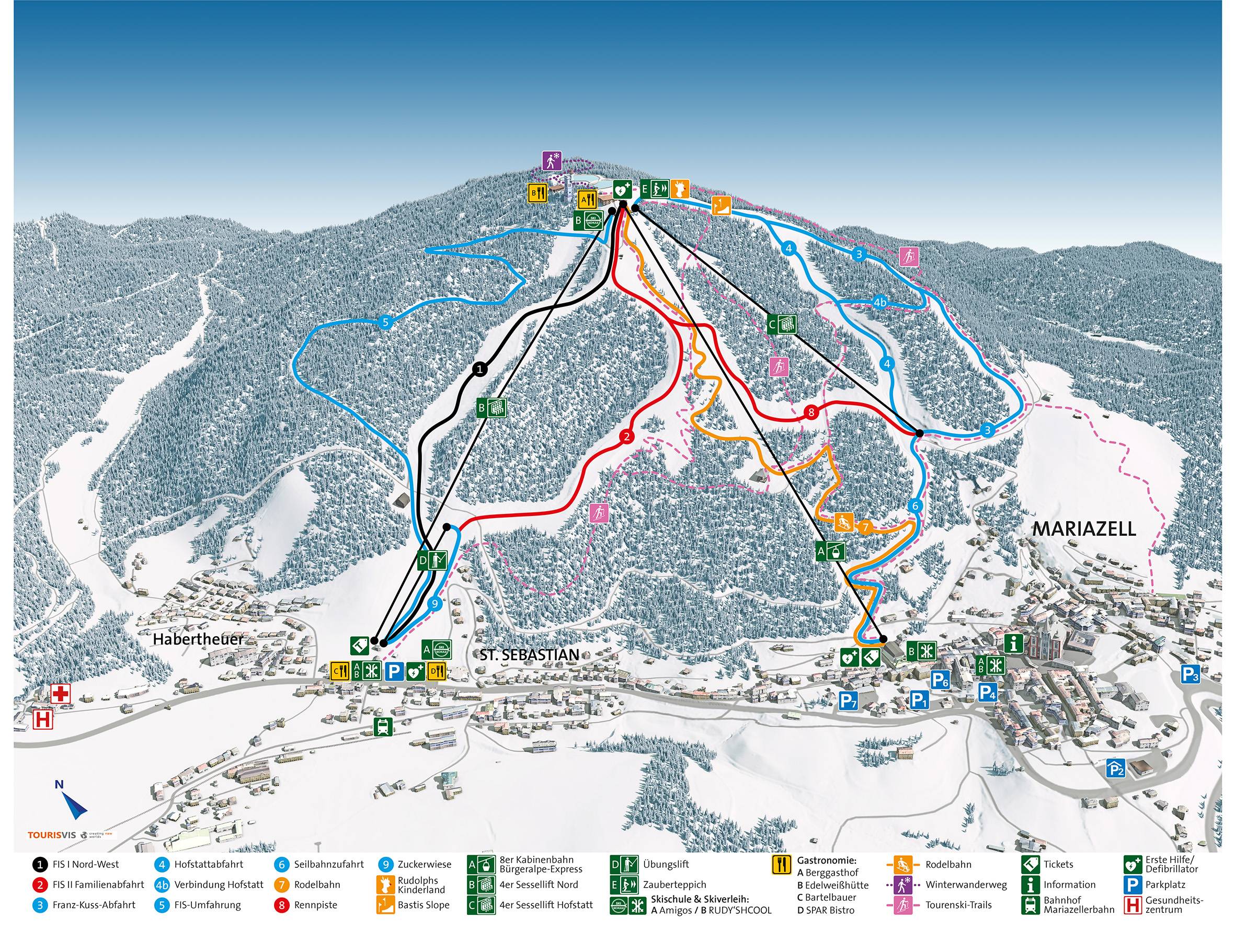 Pistekaart Mariazell/Bürgeralpe seizoen 2025/2026