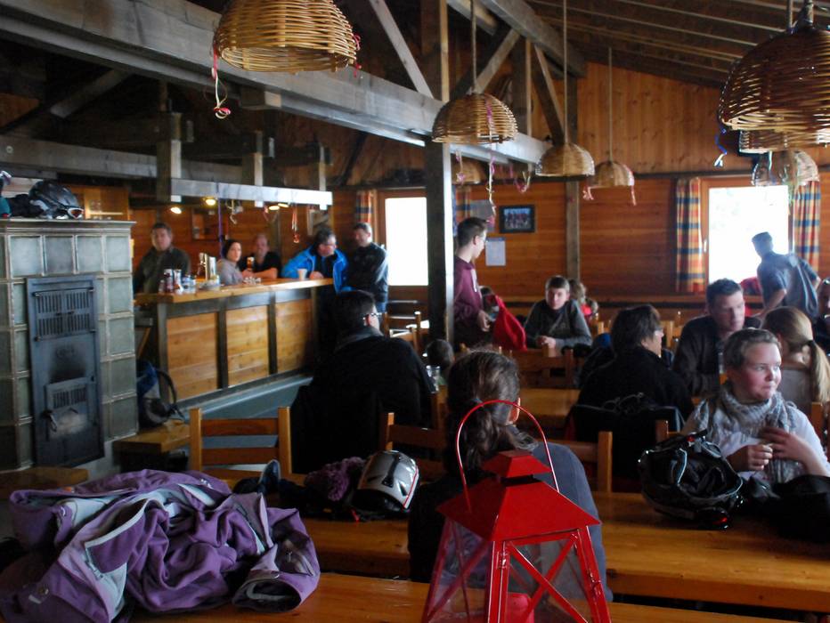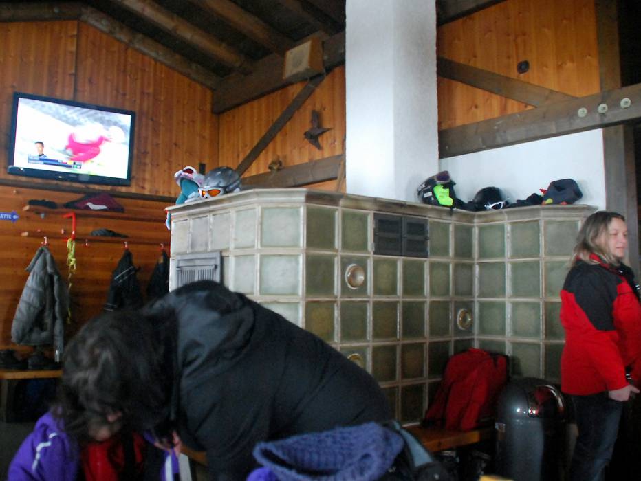 De skihut is ruim, de grote tegelkachel zorgt voor gezelligheid en op het grote scherm is de Ski-Wereldbeker te zien. Het aanbod aan gerechten is weliswaar beperkt, maar de prijzen zijn gezinsvriendelijk en de lekkere gegrilde braadworsten buiten bij de hut zijn perfect voor de kleine trek.
