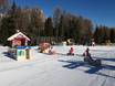 De skischool Vigo beheert een groot kinderland in Campedie. Meerdere transportbanden en grappige figuren zorgen voor een optimale start met skiën. Gevorderde kinderen breiden hun vaardigheden uit in de skiles op de gemakkelijke pistes van de kinderveilige stoeltjeslift Campo Scuola Ciampedie.