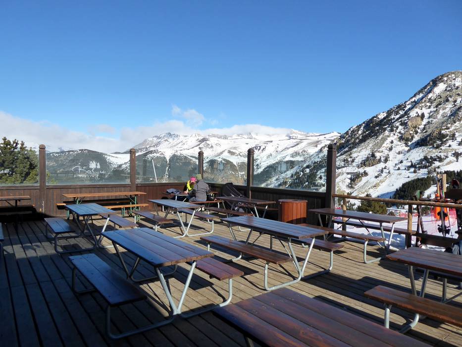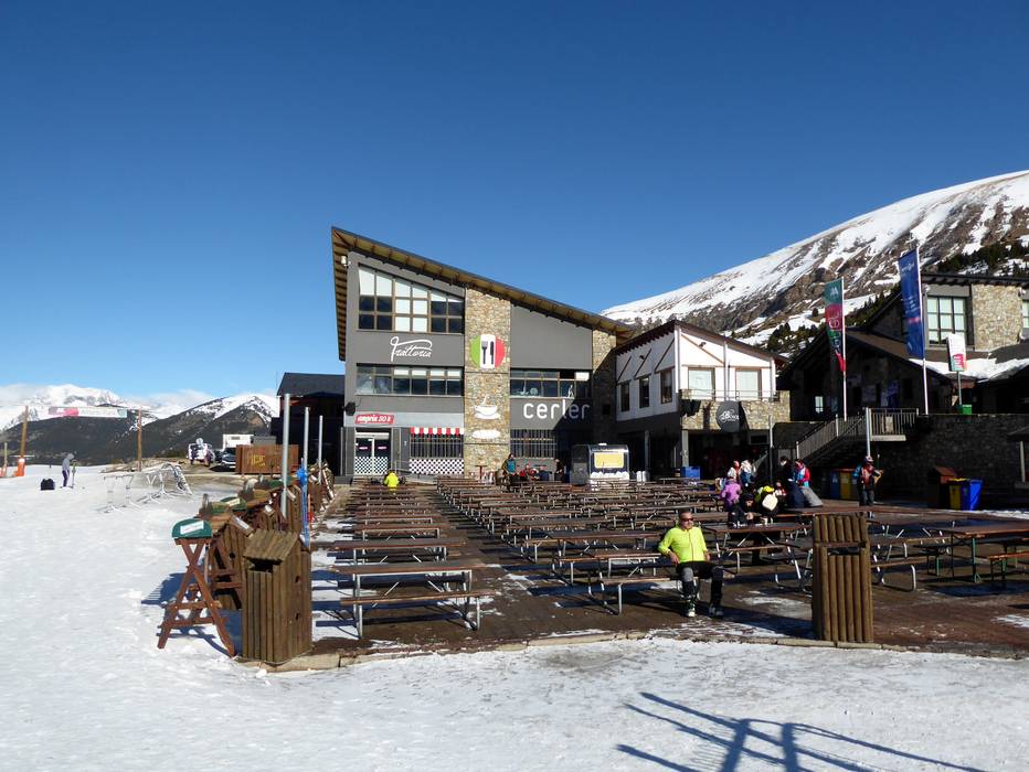 Op de belangrijke punten Cota 2000 en Ampriu 1900 vind je goede restaurants en zonneterrassen. Verdere eetgelegenheden in het skigebied Cerler vullen het aanbod aan. Helaas zijn er op de toppen geen hutten of zonneterrassen.