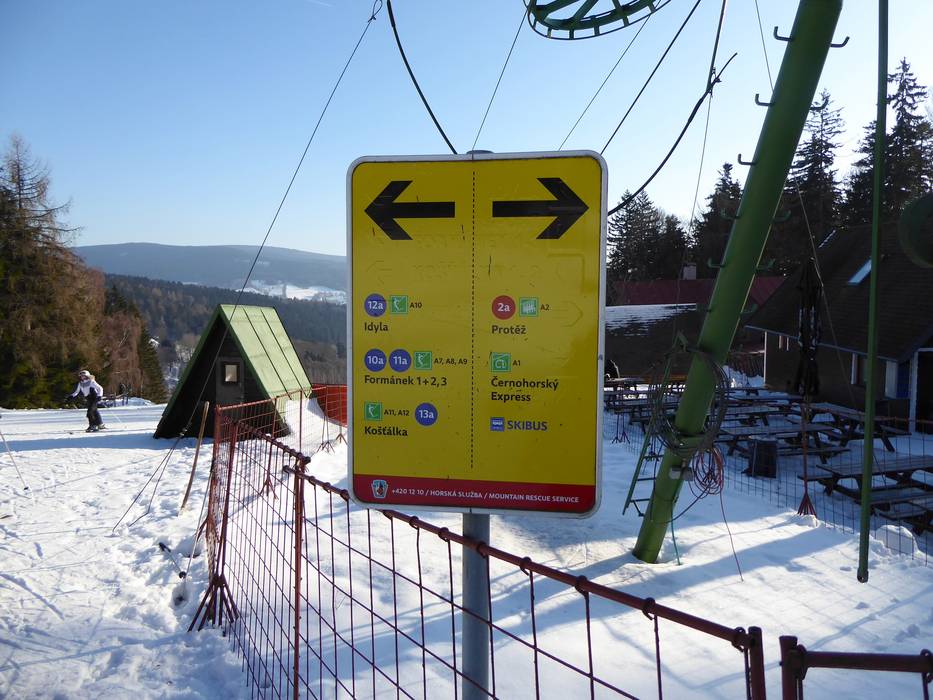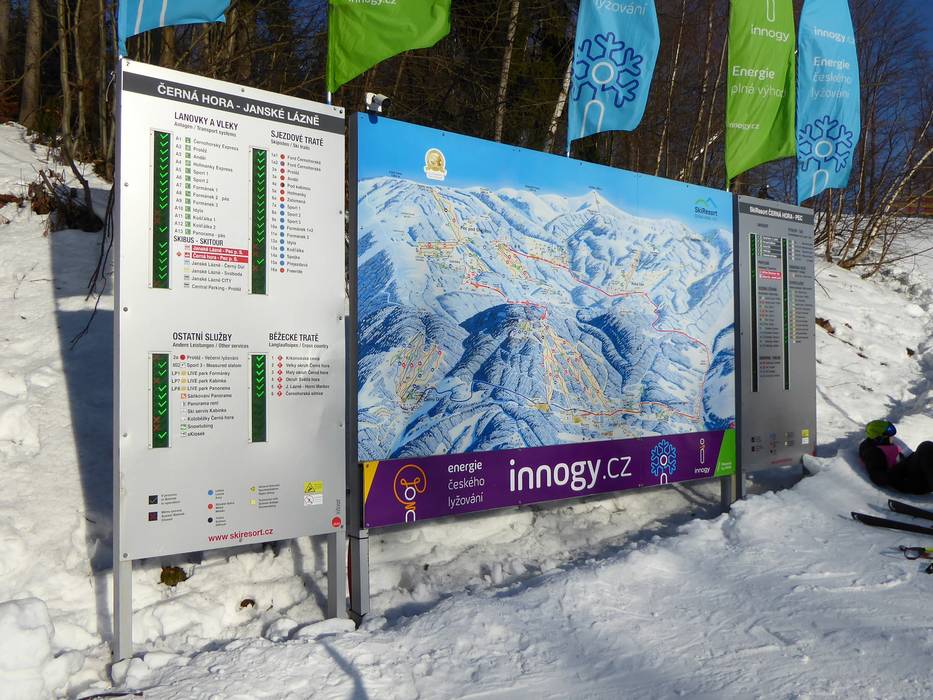 Oriëntatie (pistekaart, informatieborden, bewegwijzering piste) en veiligheid in het skigebied Černá hora – Janské Lázně