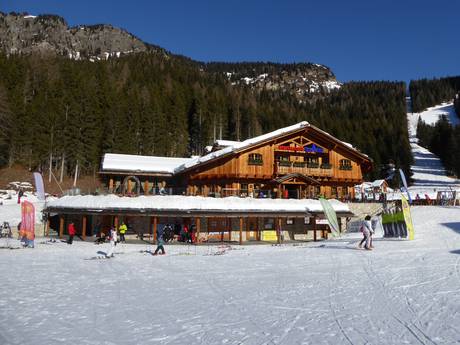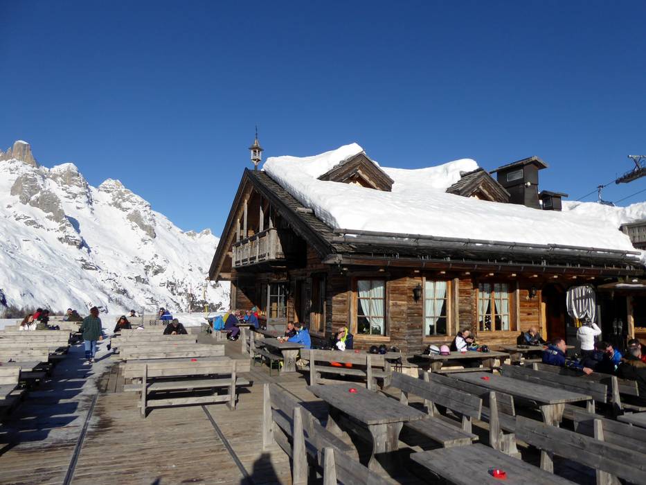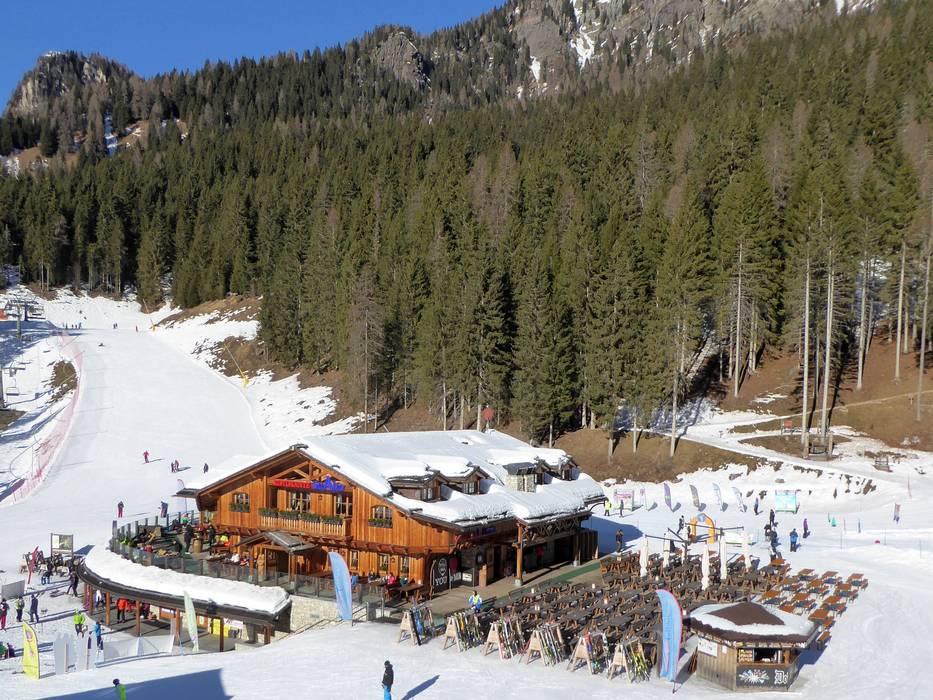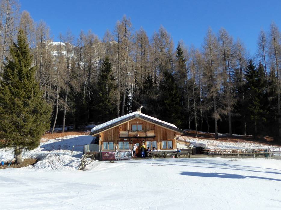 De gezellige skihut biedt regionale specialiteiten en een zonneterras. Bij slecht weer wacht de sfeervol ingerichte stube.