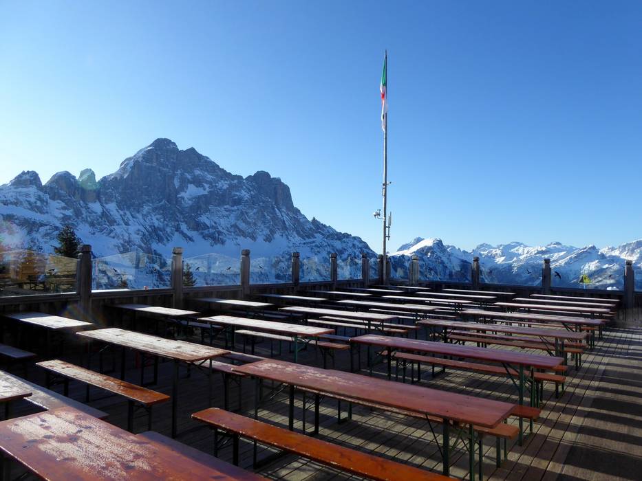 Het Rifugio Su'n Paradis is een gezellige skihut met een groot zonneterras. Er worden regionale specialiteiten geserveerd. Het uitzicht vanaf het zonneterras op de Civetta is uniek.