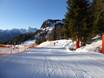 een paar bospaden geen afdalingen met tegenliggers geen off-piste /Tiefschneegedeelten
