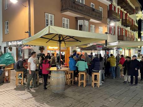 Après-ski (hutten, bars, sneeuwbars, cafés, feestzalen) Cortina d'Ampezzo Over het algemeen is het in Cortina d'Ampezzo rustiger. Je vindt er geen schirmbars of luidruchtige après-ski. Men laat de skidag gezellig eindigen in de berghutten. Bij het dalstation Socrepes zorgt het Chalet Tofane in het weekend voor muziek en sfeer. In het dorp Cortina d'Ampezzo nodigen gezellige bars in de voetgangerszone uit.