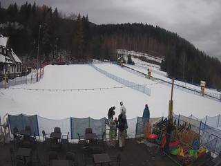 Livecam Rzyki - widok na dolny stok i orczyk w Czarnym Groniu