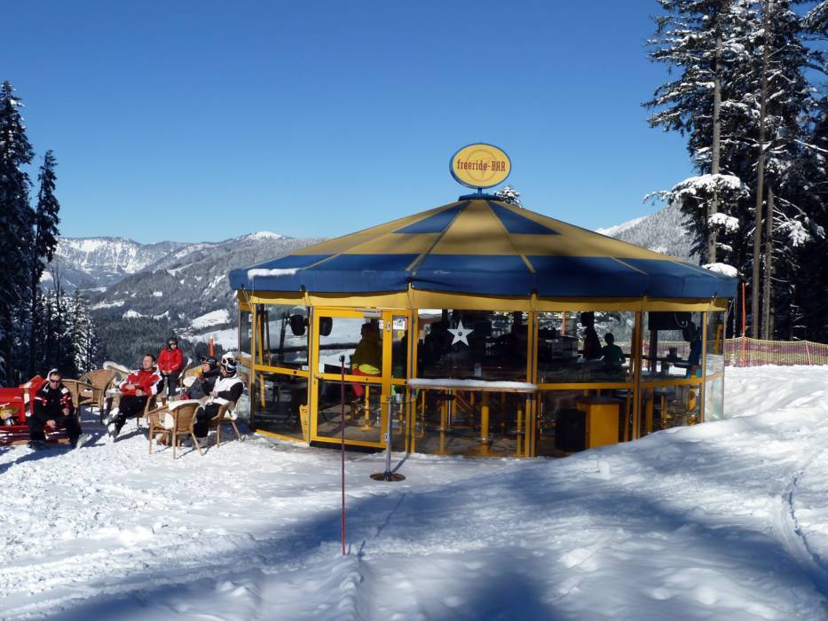 Ontspanning en een welkome afwisseling bij het skiën bieden het bergpanorama en de authentieke skihutten met karakteristieke lekkernijen en hartelijke gastheren. Het skigebied Dachstein West biedt bij de dalstation van de Hornbahn Russbach en de Donnerkogelbahn Astauwinkel een speciale service: Hier worden kinderen vanaf 1 jaar de hele dag of per uur opgevangen door pedagogisch geschoolde medewerkers.