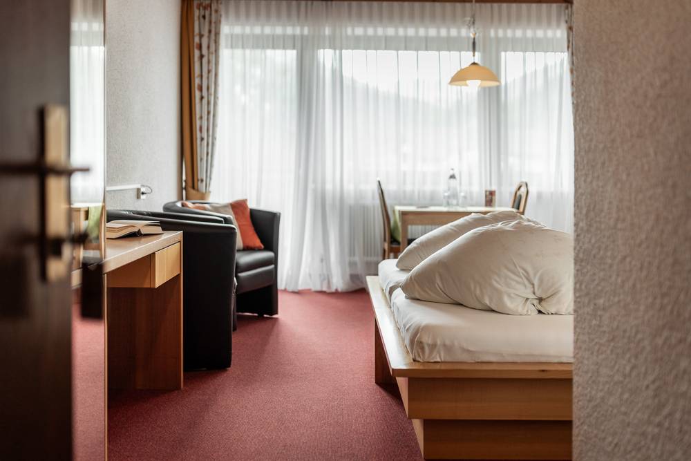 Het hotel beschikt over 42 kamers. Voor onze hotelgasten bieden wij halfpension met een uitgebreid ontbijtbuffet en een biologische hoek, evenals een 5-gangendiner in de avond.