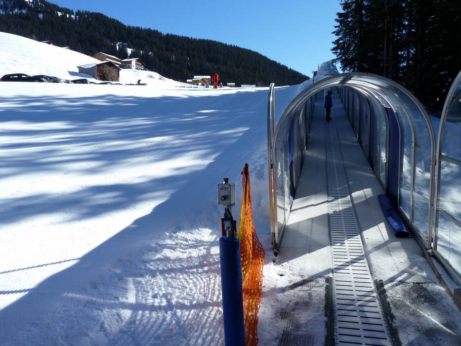 In de buurt van het dalstation van de Sunneggbahn bevindt zich een groot oefenterrein met transportbanden. Eén daarvan is overdekt. Hier is veel ruimte en zijn er leuke figuren voor de kleintjes.