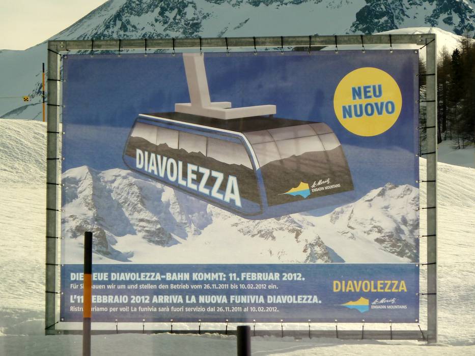 Voor de montage van de nieuwe cabines en voor onderhoud is de Diavolezza-kabelbaan van 26 november 2011 tot 10 februari 2012 gesloten. De heropening is op 11 februari 2012.2000/2001
