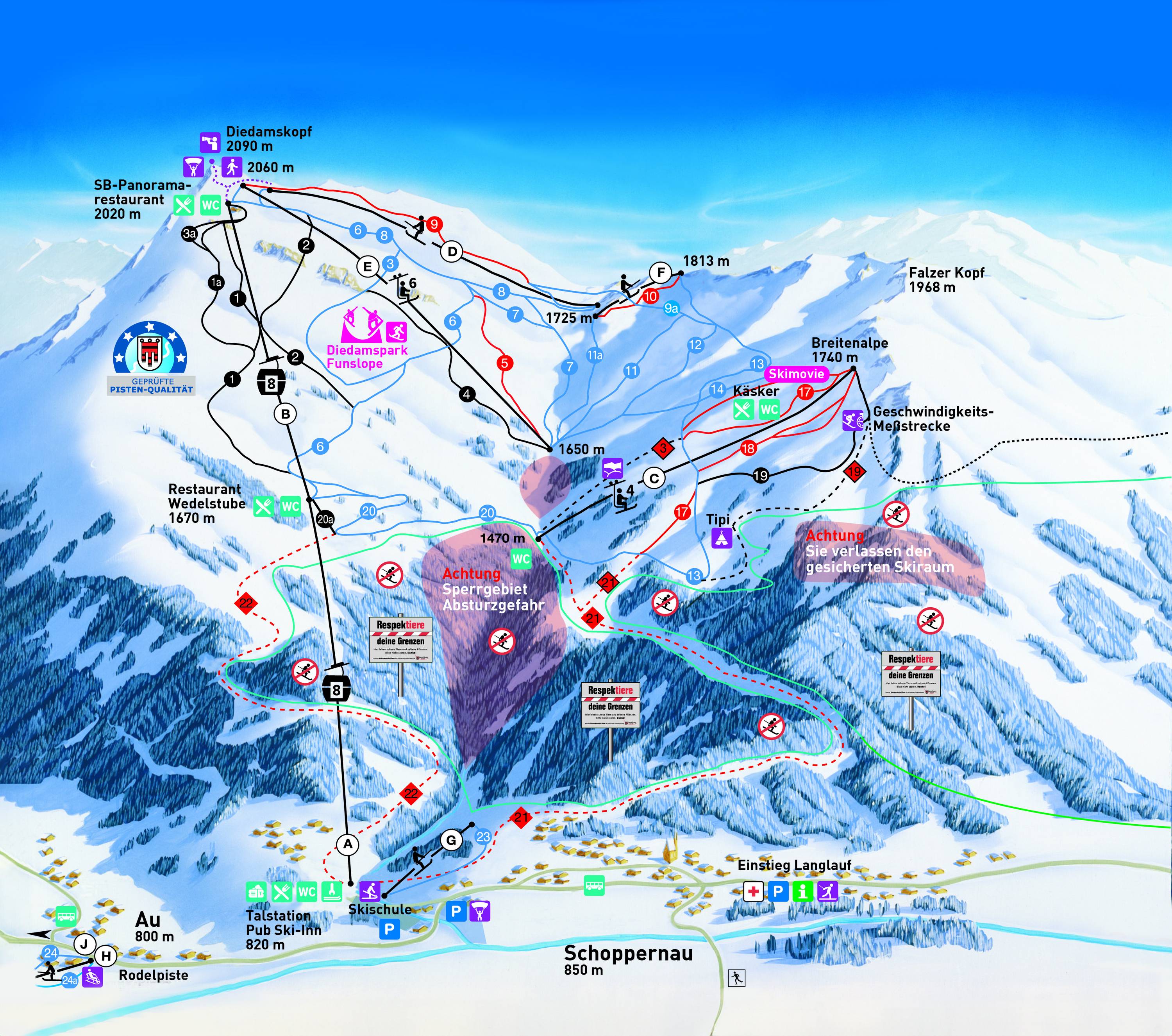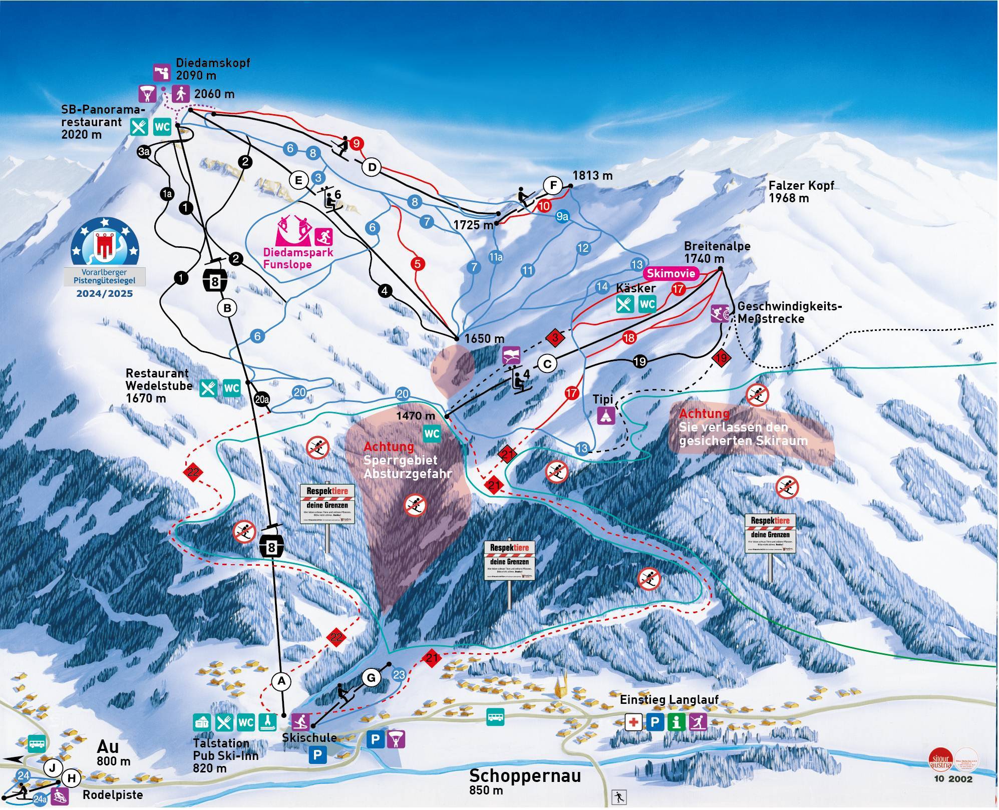 Pistekaart Diedamskopf – Schoppernau seizoen 2025/2026