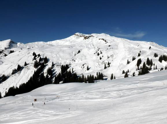 Het skigebied strekt zich uit over de hellingen tussen Diedamskopf en Falzer Kopf. Je kunt de andere kant goed zien en de afdalingen zijn vrij lang.